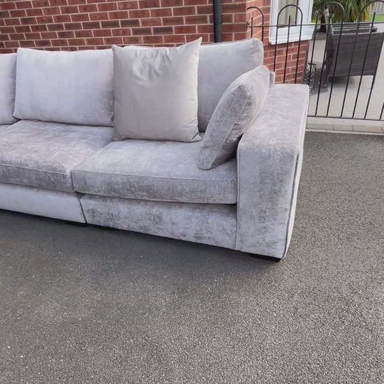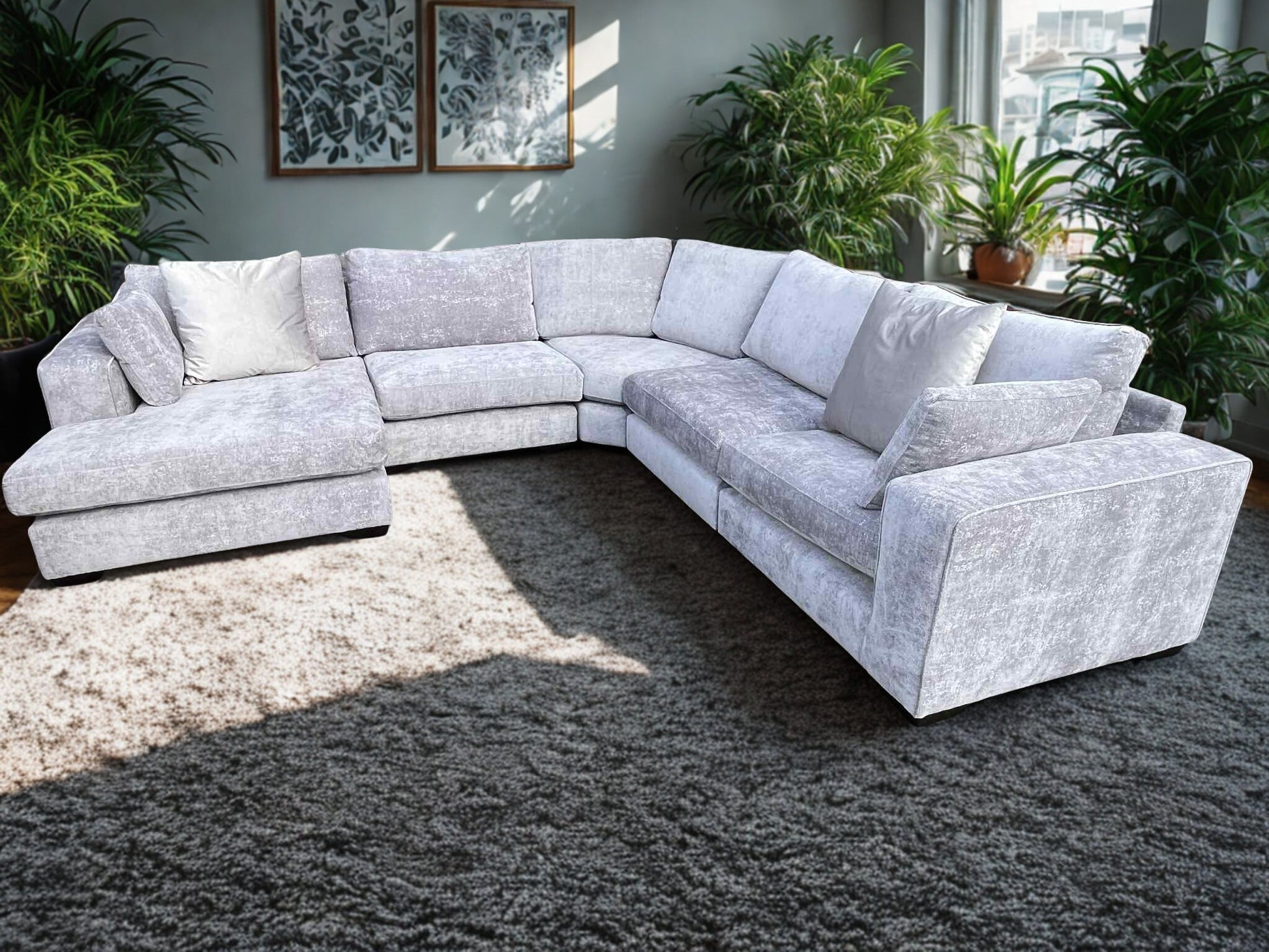 New Modular design sofa available now for viewings and delivery. Choose the orientation to suit your room. Light grey premium soft fabric, left hand chaise section to put up those feet and relax.